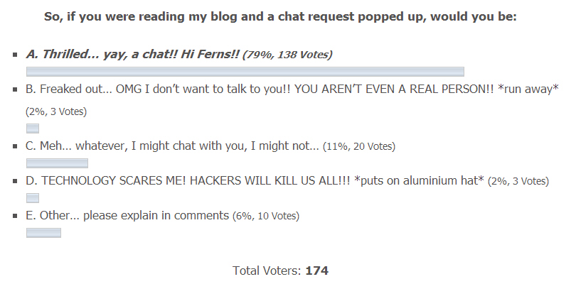 I should probably mention that while I can pick ‘a person who is reading my blog’ to chat with, what I see is IP addresses, so if I do it, it would be kind of random.
